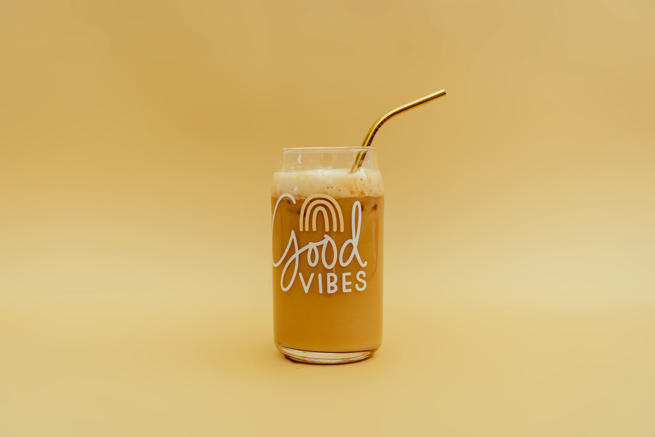 Drink your cold beverage in this handmade Good Vibes rainbow…